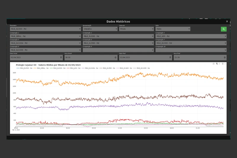 Agora na opção da apresentação gráfica interativa temos a possibilidade de realizar a comparação de até 10 parâmetros simultaneamente.