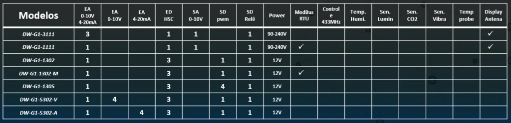 *Configuráveis via software do próprio módulo ou via Portal Wbms.